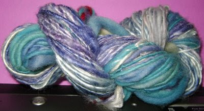 recently spun yarn the first two are batt bites from corgi hill farms and the second one is a mix of fiber from the june phat fiber boxhand spun with my drop spindle.